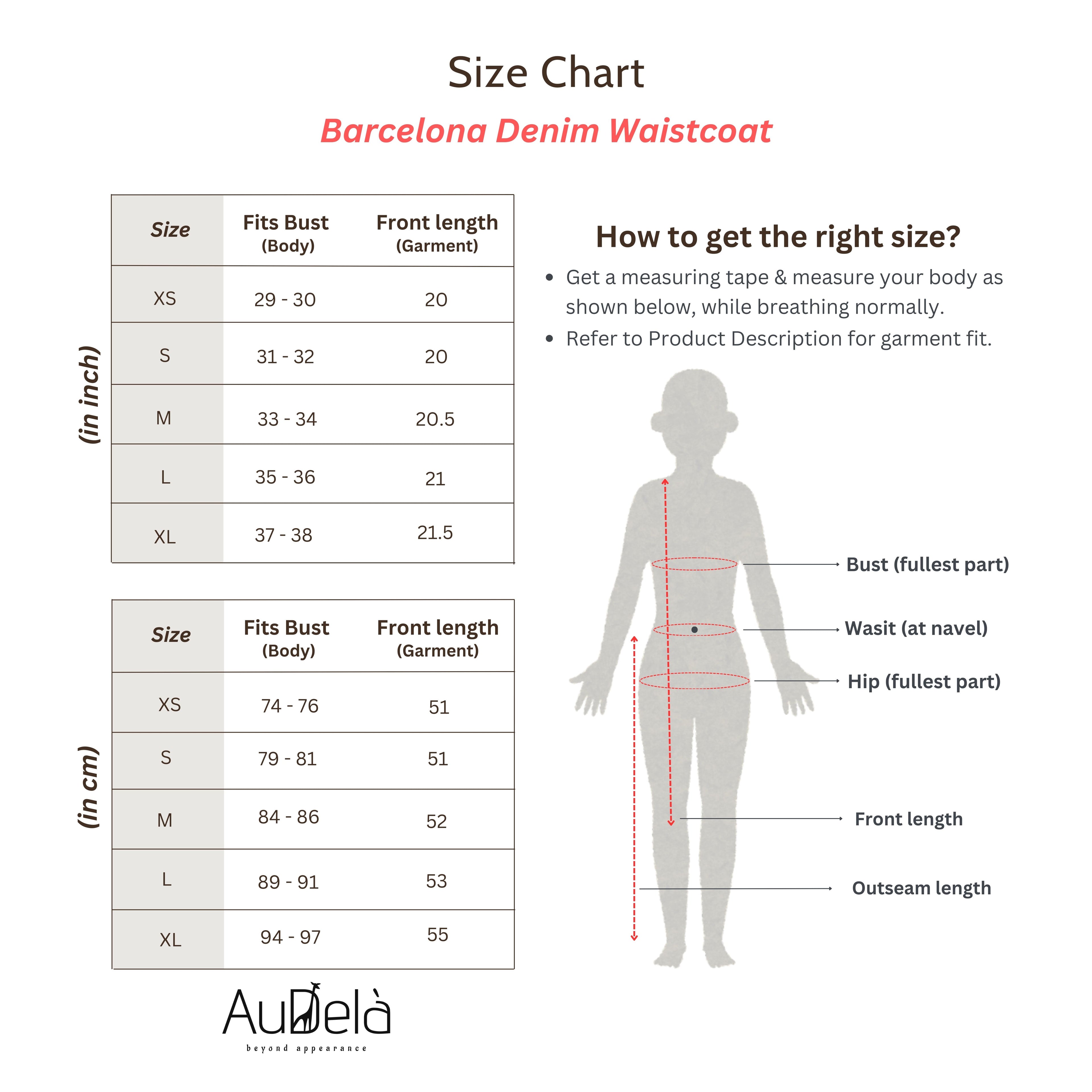 Please refer to the Size Guide link above for measurements and Product Description for the garment fit.