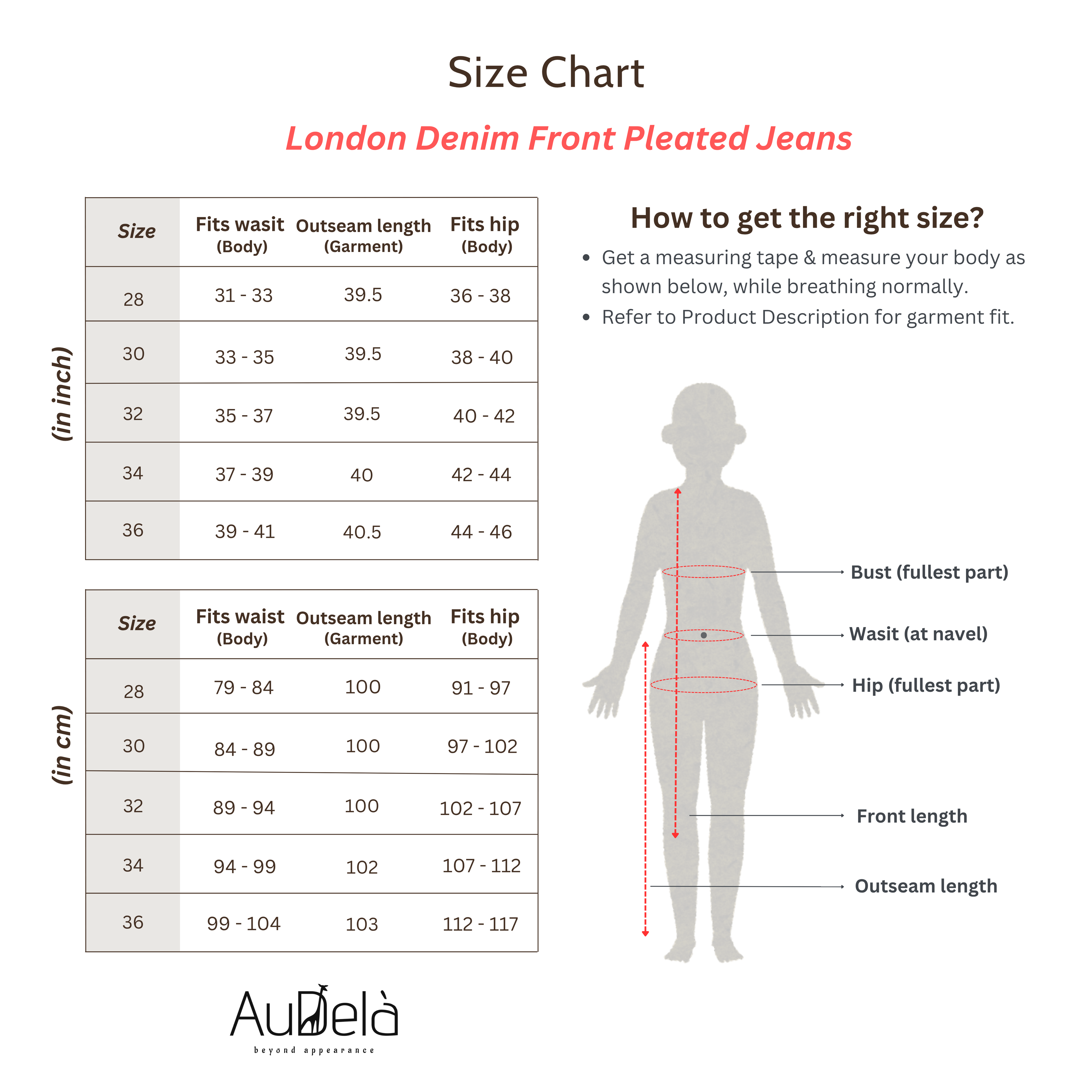 London high-street style, but make it comfy! The London Denim Front Pleated Jeans are crafted from super-soft, structured denim. The relaxed, wide-leg fit and subtle front pleats give extra room around the hips. They skim beautifully over the legs, giving an elongated look, and instantly elevate your outfit with our London Denim Balloon Jacket, London Denim Buttoned Jacket, or London Denim Cotton Shirt.